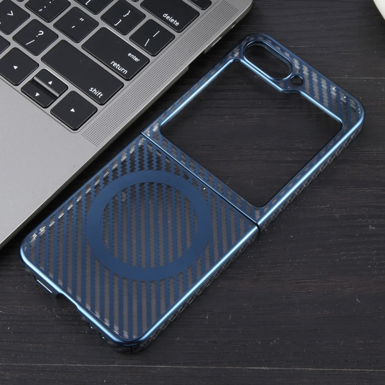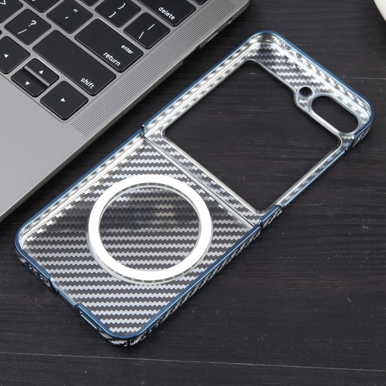 For Samsung Galaxy Z Flip5 6D Plated Carbon Fiber Clear Magsafe PC Phone Case(Dream Blue)