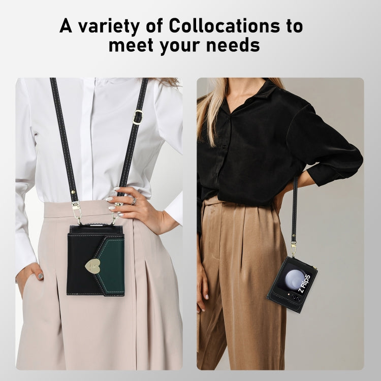 For Samsung Galaxy Z Flip5 POLA Color Block Love Buckle Multi-Card Slots Wallet Phone Case(Black)