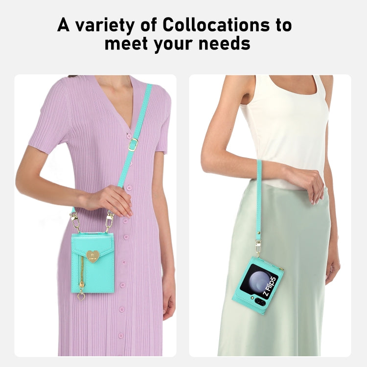 For Samsung Galaxy Z Flip5 POLA Litchi Texture Love Buckle Multi-Card Slots Zipper Wallet Phone Case(Blue)