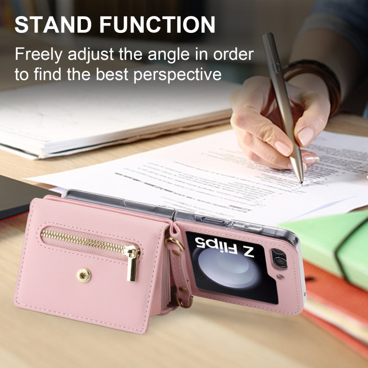 For Samsung Galaxy Z Flip5 POLA Love Buckle Multi-Card Slots Zipper Wallet Phone Case(Pink)