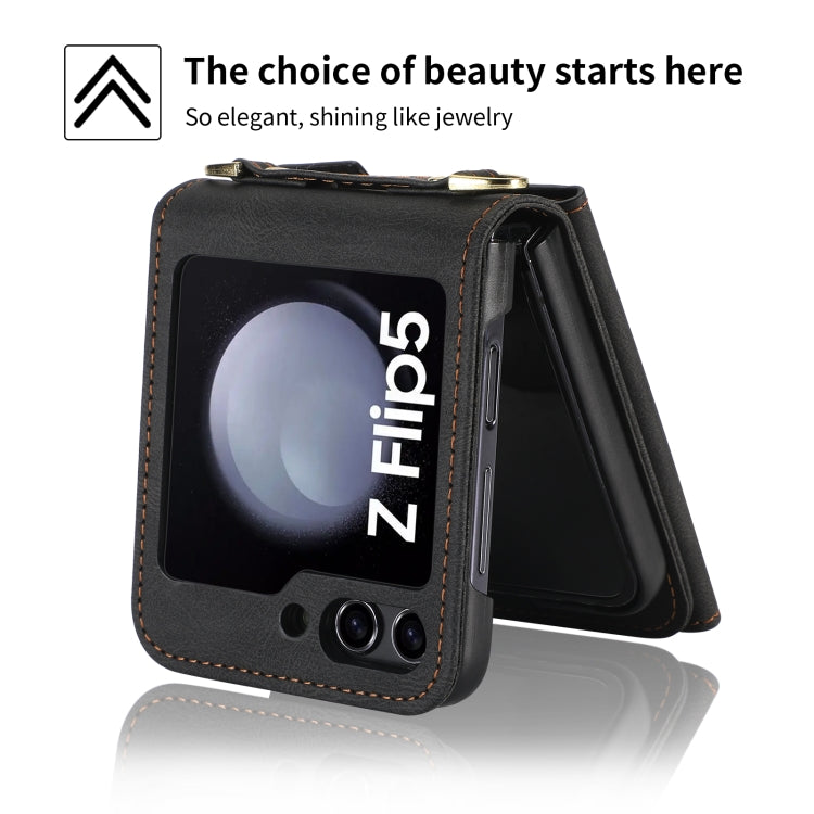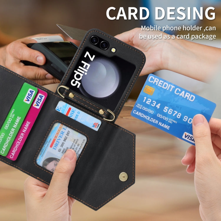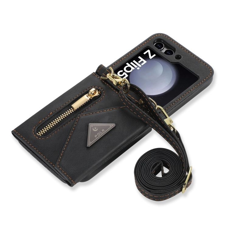 For Samsung Galaxy Z Flip5 POLA Skin Feel Multi-Card Slots Zipper Wallet Phone Case(Black)