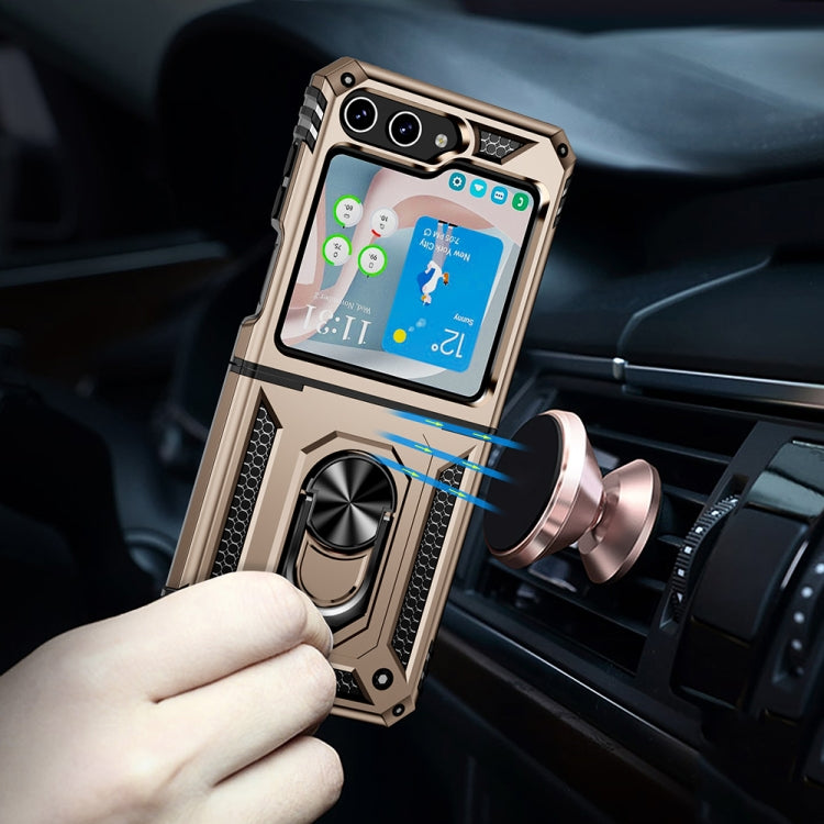 For Samsung Galaxy Z Flip5 Shockproof TPU + PC Phone Case with Holder(Gold)