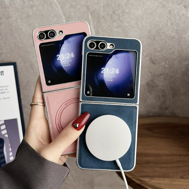 For Samsung Galaxy Z Flip5 Skin Feel Leather Texture MagSafe Pearlescent Paint Shockproof Phone Case(Blue)