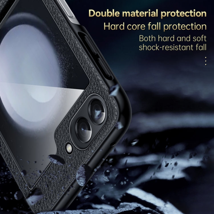 For Samsung Galaxy Z Flip5 SULADA Lychee Texture Invisible Holder Leather Back Cover Phone Case(Black)
