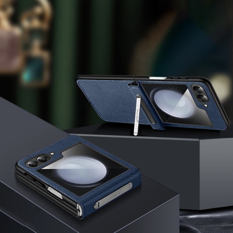 For Samsung Galaxy Z Flip5 SULADA Lychee Texture Invisible Holder Leather Back Cover Phone Case(Blue)