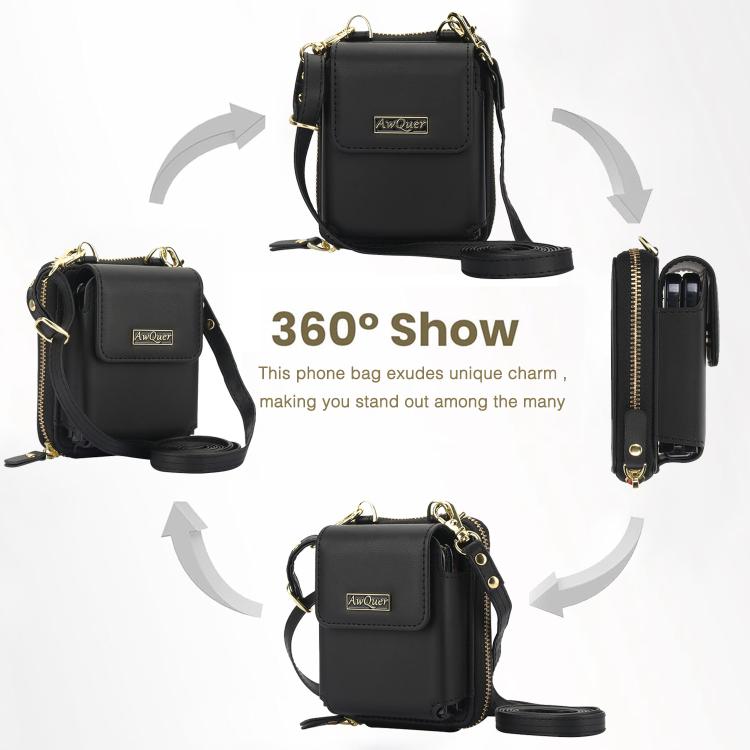 For Samsung Galaxy Z Flip7 /7 FE /6 /5 AwQuer AW005 Crossbody Folding Phone Leather Bag(Black)
