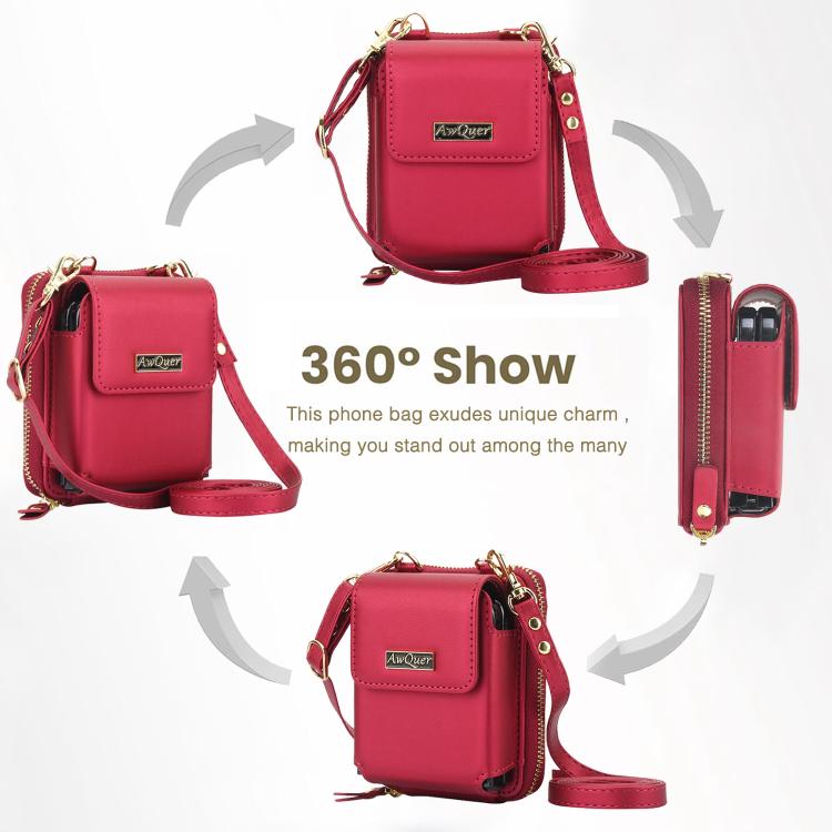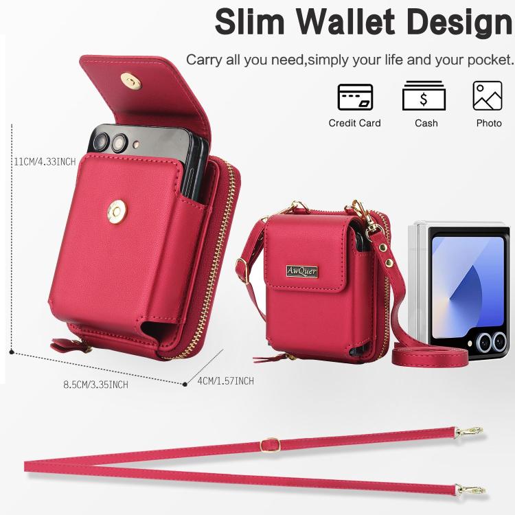 For Samsung Galaxy Z Flip7 /7 FE /6 /5 AwQuer AW005 Crossbody Folding Phone Leather Bag(Red)