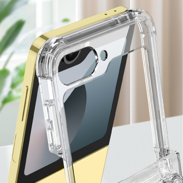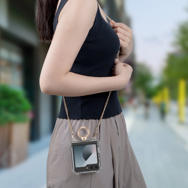 For Samsung Galaxy Z Flip6 / Flip7 FE GKK Clear Airbag Hinge Full Coverage Phone Case with Ring / Metal Chain(Gold)