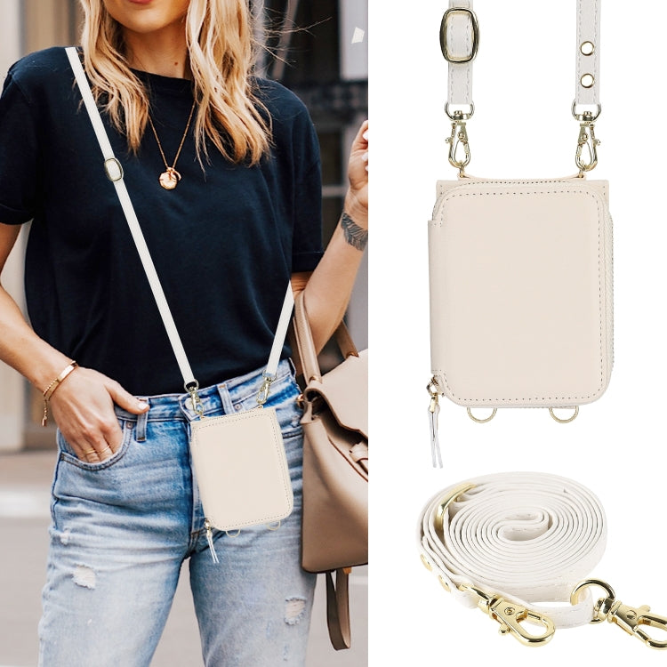 For Samsung Galaxy Z Flip6 / Flip7 FE Long and Short Lanyard Zipper Card Slot Foldable Phone Case(Beige)