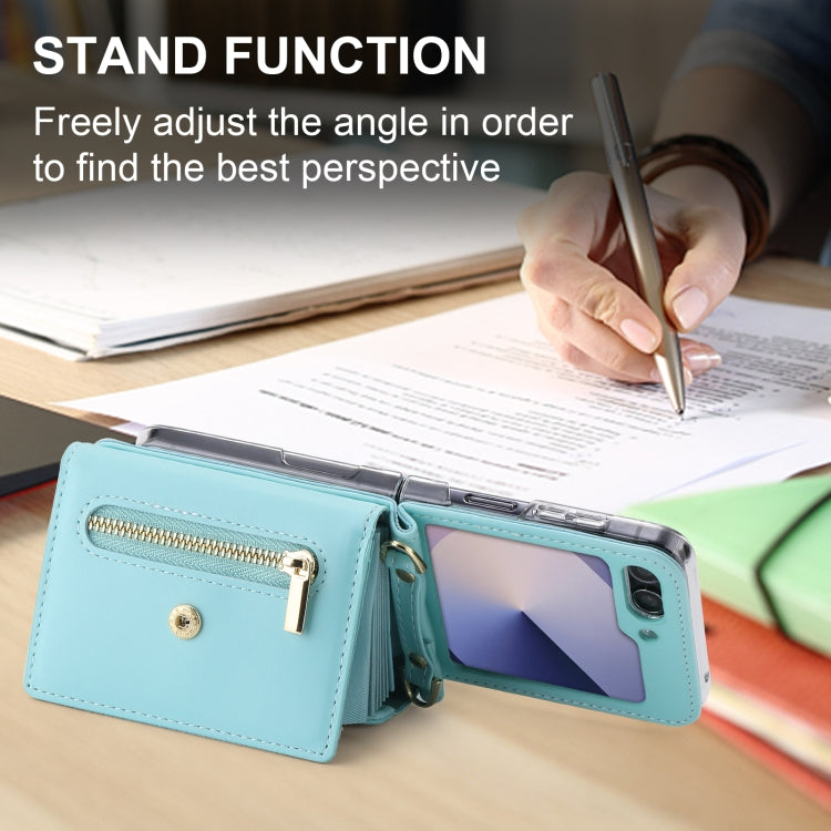 For Samsung Galaxy Z Flip6 / Flip7 FE POLA Love Buckle Multi-Card Slots Zipper Wallet Phone Case(Blue)