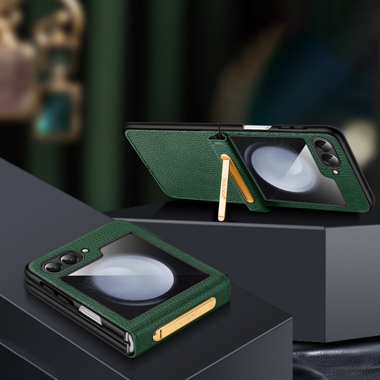For Samsung Galaxy Z Flip7 FE / Flip6 SULADA Lychee Texture Invisible Holder Leather Back Cover Phone Case(Green)