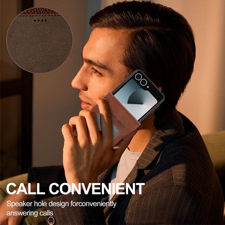 For Samsung Galaxy Z Flip7 5G LC.IMEEKE Calf Texture Leather Phone Case(Coffee)