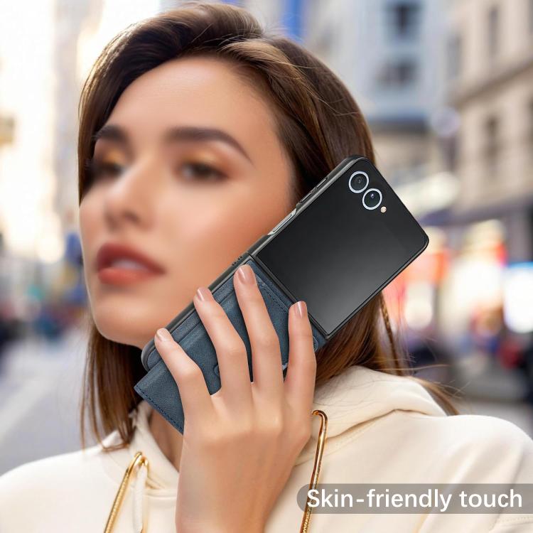 For Samsung Galaxy Z Flip7 Kalebol Magnetic Button Card Bag MagSafe Ring Leather Phone Case(Blue)