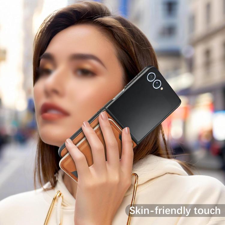 For Samsung Galaxy Z Flip7 Kalebol Slim MagSafe Ring Magnetic Card Bag Leather Phone Case(Brown)