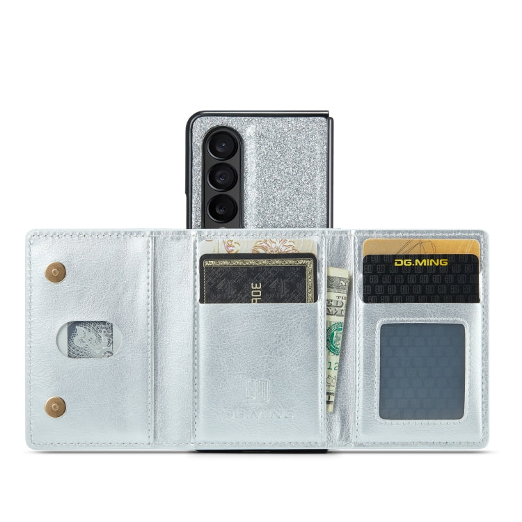 For Samsung Galaxy Z Fold3 5G DG.MING M3 Series Glitter Powder Card Bag Leather Case(Silver)