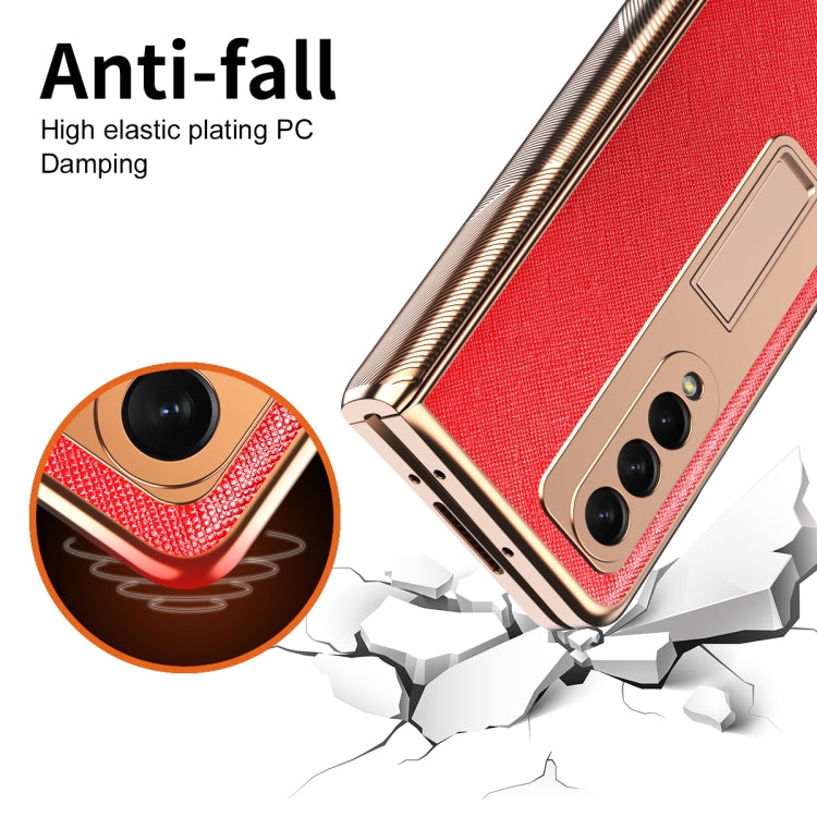 For Samsung Galaxy Z Fold3 5G Electroplated Armor Cross Texture Phone Case(Red)