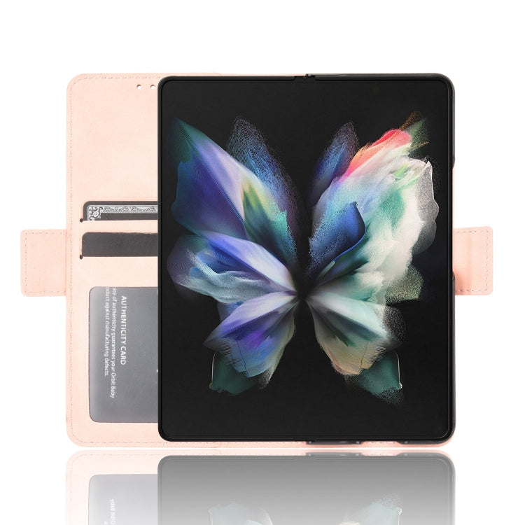 For Samsung Galaxy Z Fold3 5G Skin Feel Calf Pattern Horizontal Flip Leather Case with Holder & Card Slots & Photo Frame(Pink)