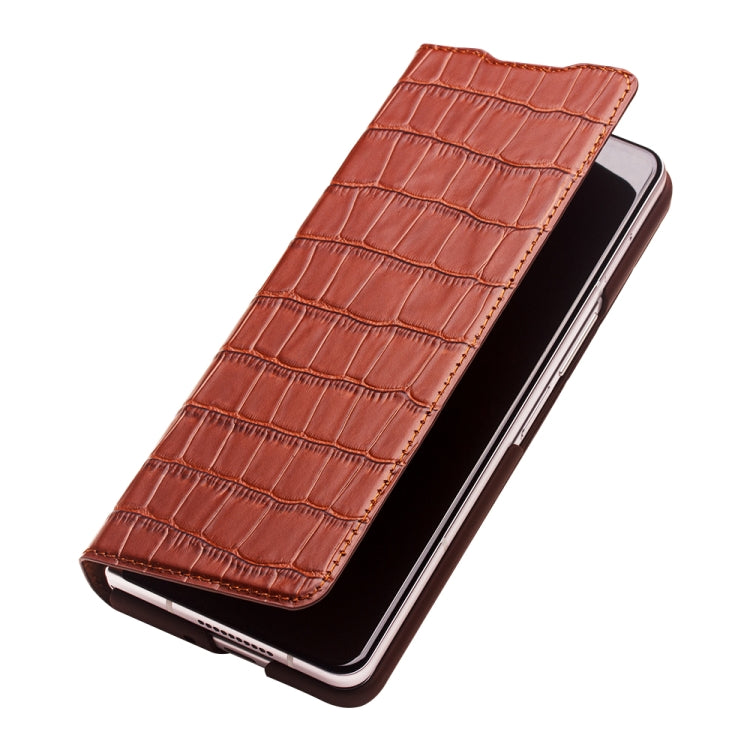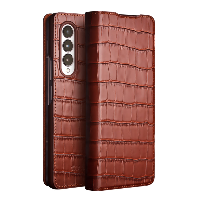 For Samsung Galaxy Z Fold3 5G/W22 5G QIALINO Crocodile Pattern Genuine Leather Phone Case(Brown)