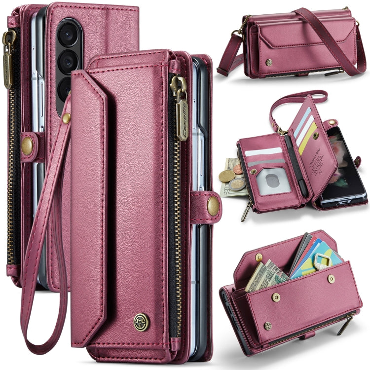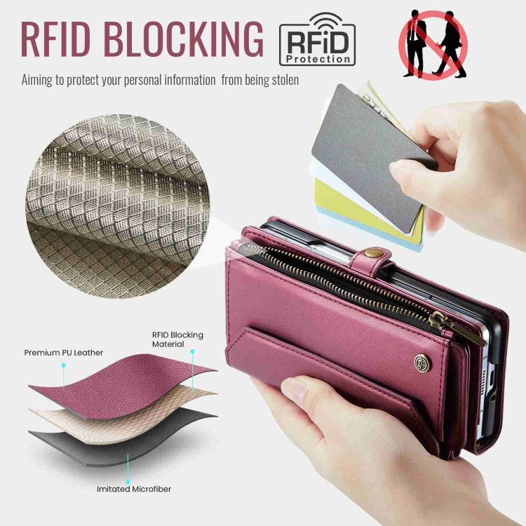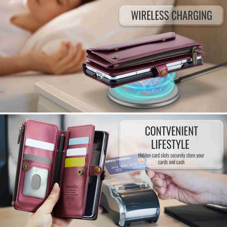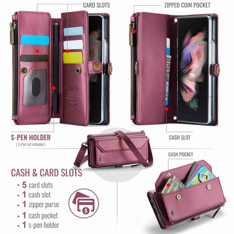 For Samsung Galaxy Z Fold3 CaseMe C36 Card Slots Zipper Wallet RFID Anti-theft Leather Phone Case(Wine Red)