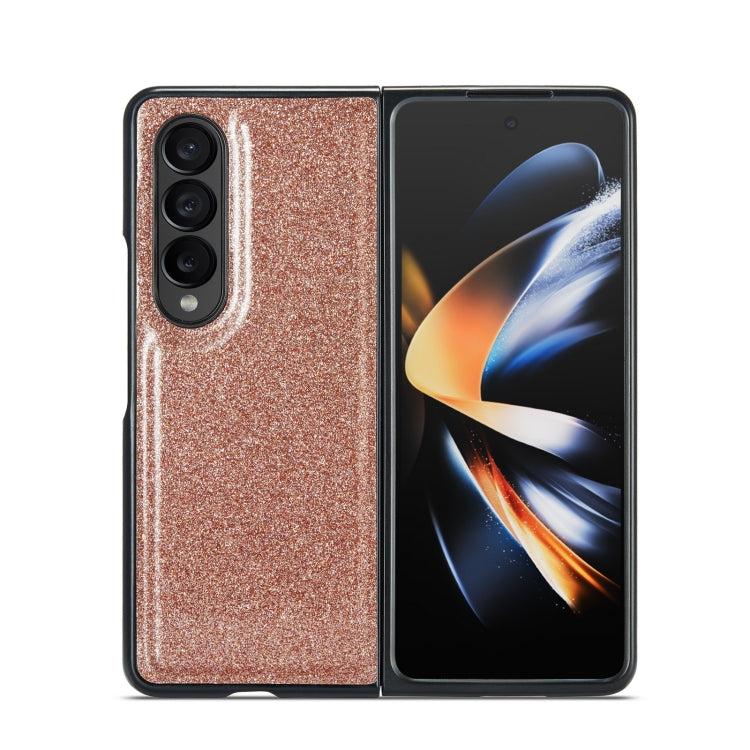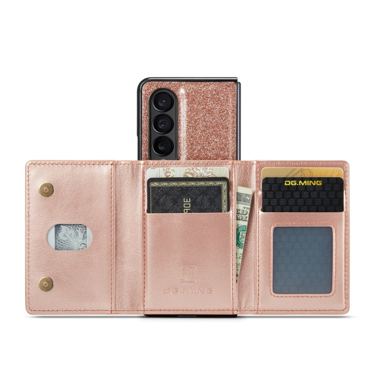 For Samsung Galaxy Z Fold4 5G DG.MING M3 Series Glitter Powder Card Bag Leather Case(Rose Gold)