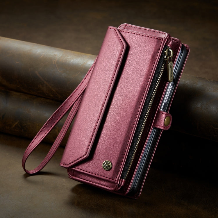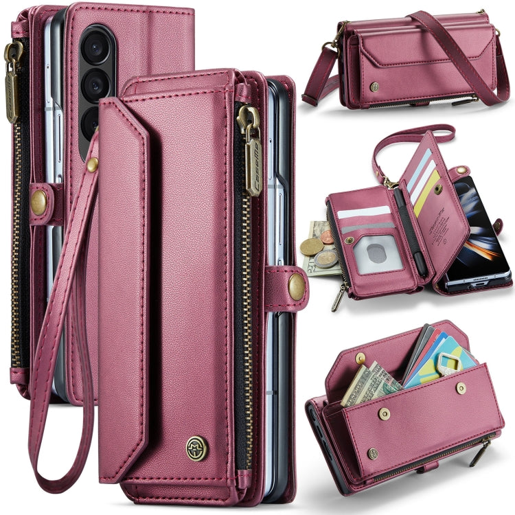 For Samsung Galaxy Z Fold4 CaseMe C36 Card Slots Zipper Wallet RFID Anti-theft Leather Phone Case(Wine Red)