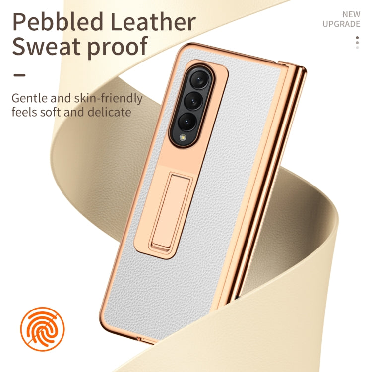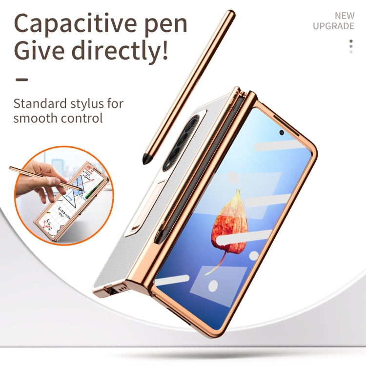 For Samsung Galaxy Z Fold4 Litchi Texture Leather Hinged Electroplated Phone Case with Pen(White)