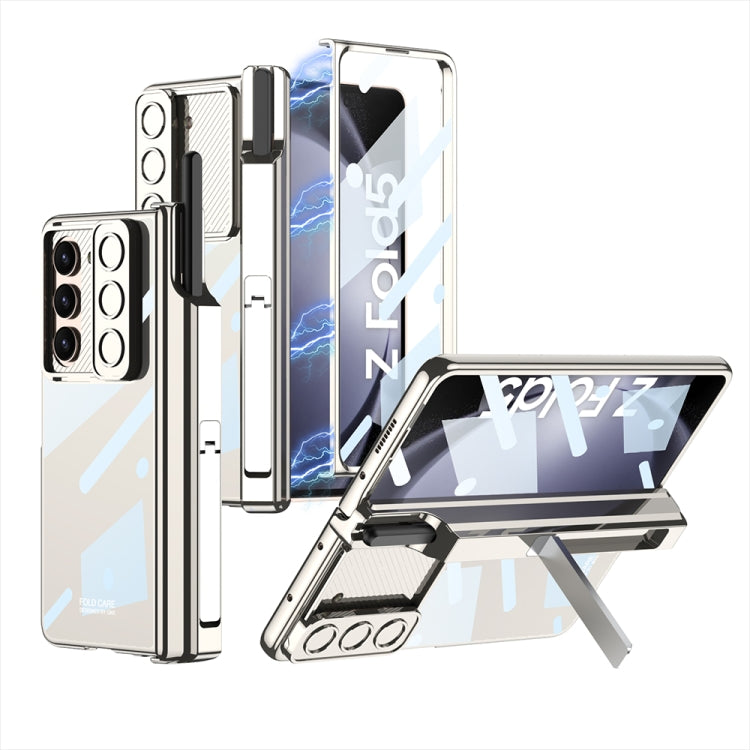 For Samsung Galaxy Z Fold5 5G GKK Integrated Push Lens Window Fold Hinge Phone Case with Pen Slots(Silver)