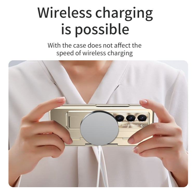 For Samsung Galaxy Z Fold5 5G Integrated Folding Hinge Phone Case with Stylus(Champagne Gold)