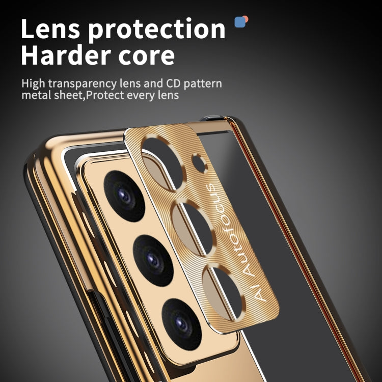 For Samsung Galaxy Z Fold5 Aluminum Alloy Double Hinge Shockproof Phone Protective Case(Black Gold)