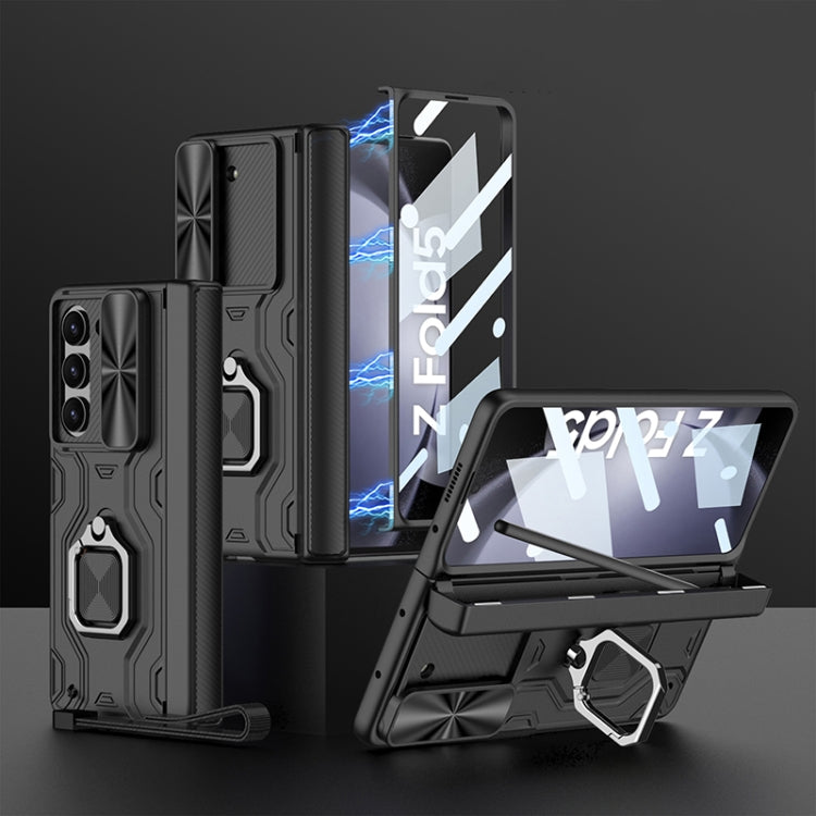 For Samsung Galaxy Z Fold5 GKK Integrated Folding Alloy Shell PC Phone Case with Pen Box, Not Included Pen(Black)