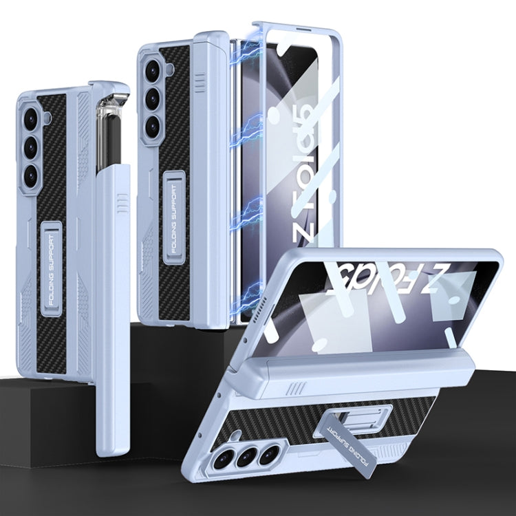 For Samsung Galaxy Z Fold5 GKK Integrated Folding Mech Shell PC Phone Case with Slide Pen Box(Light Blue)