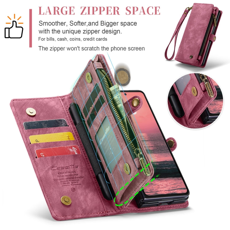 For Samsung Galaxy Z Fold6 5G CaseMe 008 Multifunctional Zipper Wallet Leather Phone Case with Lanyard(Red)