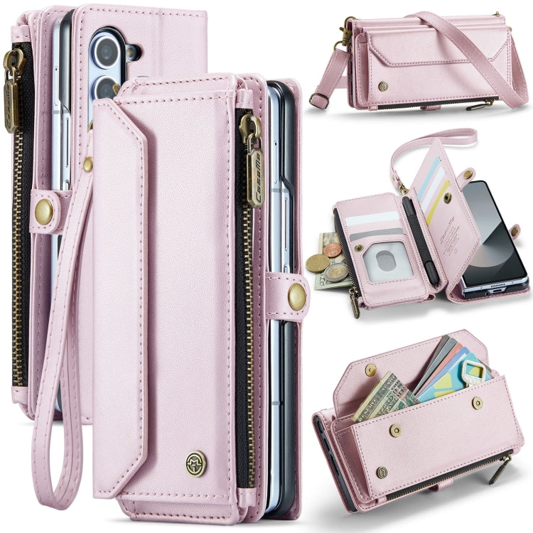 For Samsung Galaxy Z Fold6 5G CaseMe C36 Card Slots Zipper Wallet RFID Anti-theft Leather Phone Case(Pink)