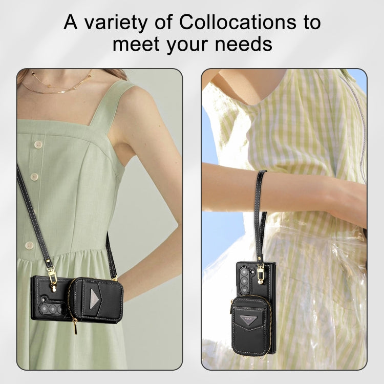 For Samsung Galaxy Z Fold6 POLA Multi-Card Slots Zipper Wallet Phone Case(Black)