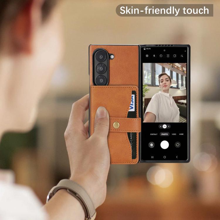 For Samsung Galaxy Z Fold7 Kalebol Magnetic Button Card Bag MagSafe Ring Leather Phone Case(Brown)