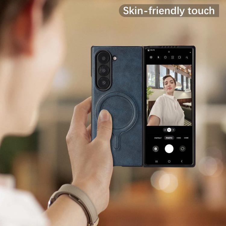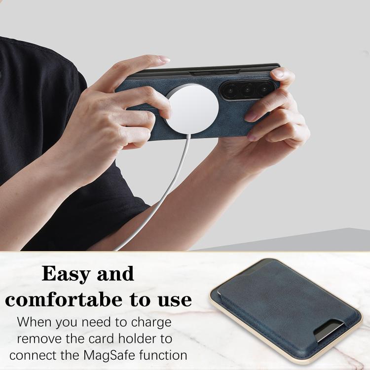 For Samsung Galaxy Z Fold7 Kalebol Slim MagSafe Ring Magnetic Card Bag Leather Phone Case(Blue)