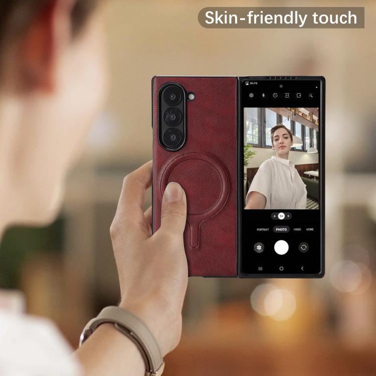 For Samsung Galaxy Z Fold7 Kalebol Slim MagSafe Ring Magnetic Card Bag Leather Phone Case(Red)