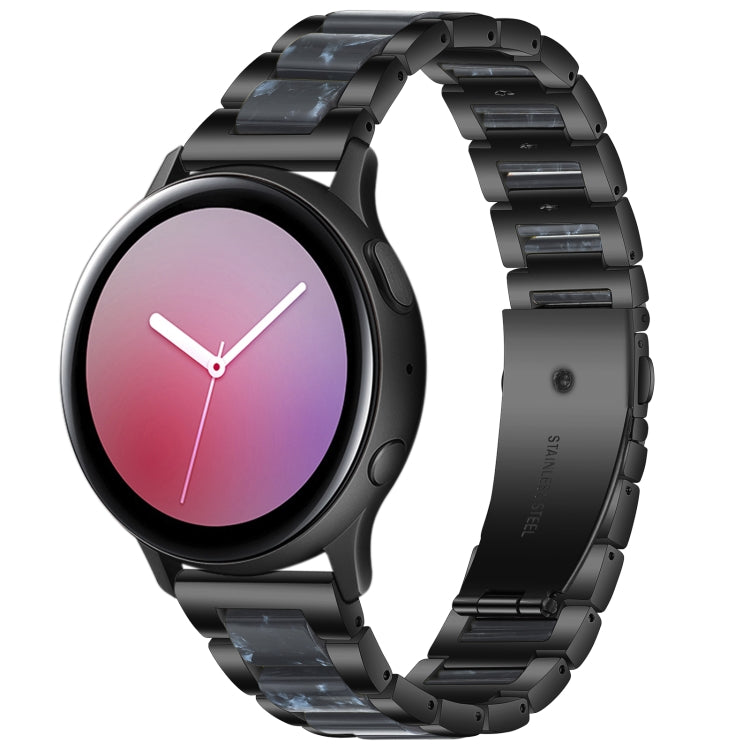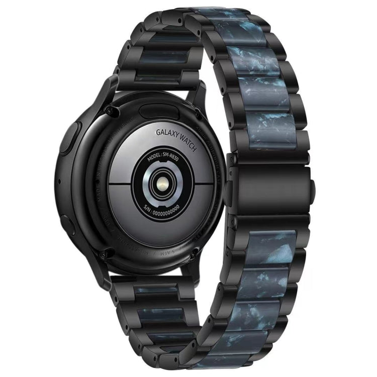 For Samsung Smart Watch 22mm Three-beads Steel + Resin Watch Band(Black Blue)