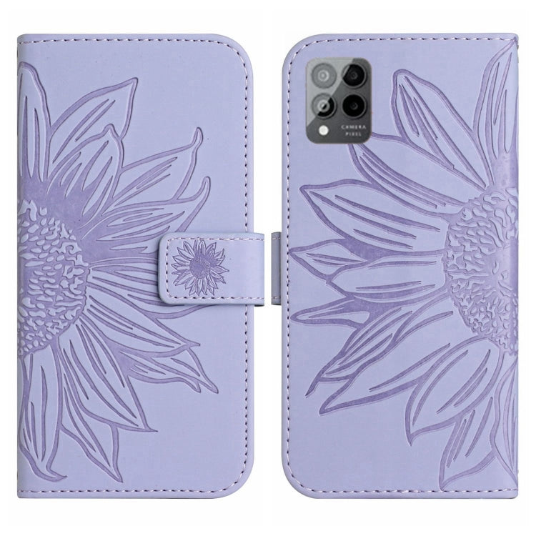 For T-Mobile Revvl 6 Pro 5G Skin Feel Sun Flower Pattern Flip Leather Phone Case with Lanyard(Purple)