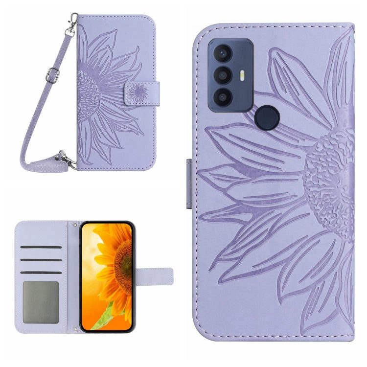For TCL 30 SE/30E/306/305 Skin Feel Sun Flower Pattern Flip Leather Phone Case with Lanyard(Purple)