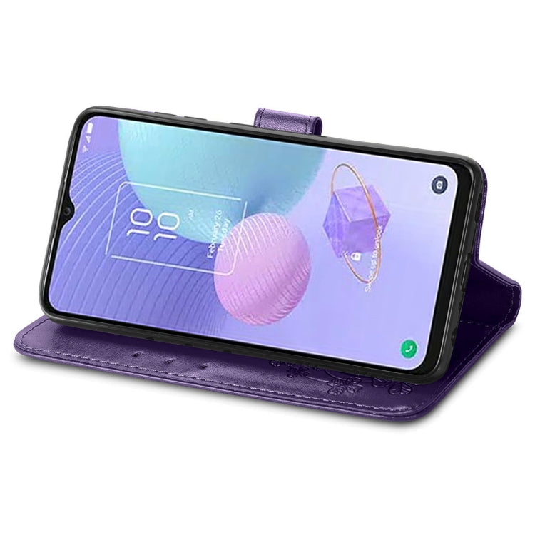 For TCL 405 Four-leaf Clasp Embossed Buckle Leather Phone Case(Purple)