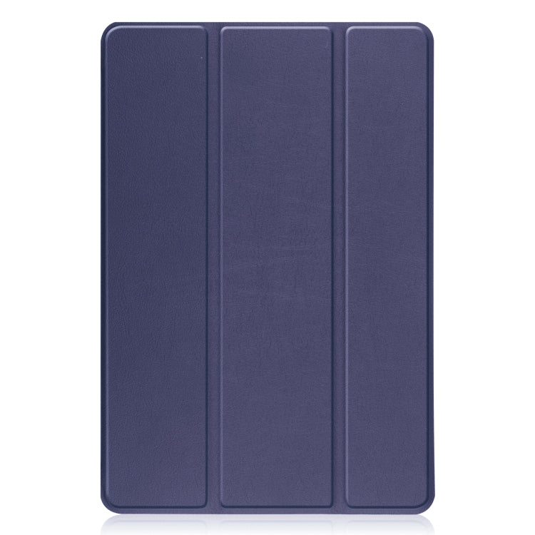 For TCL Tab 10s Three-folding Holder Custer Texture Leather Tablet Case(Dark Blue)