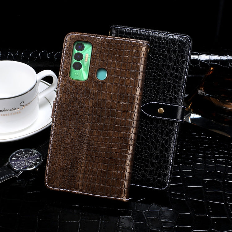 For Tecno Spark 7P idewei Crocodile Texture Horizontal Flip Leather Case with Holder & Card Slots & Wallet(Black)