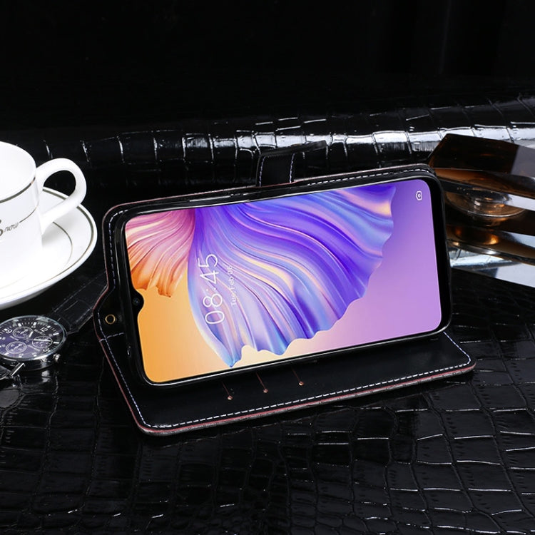 For Tecno Spark 8 idewei Crocodile Texture Leather Phone Case(Dark Blue)