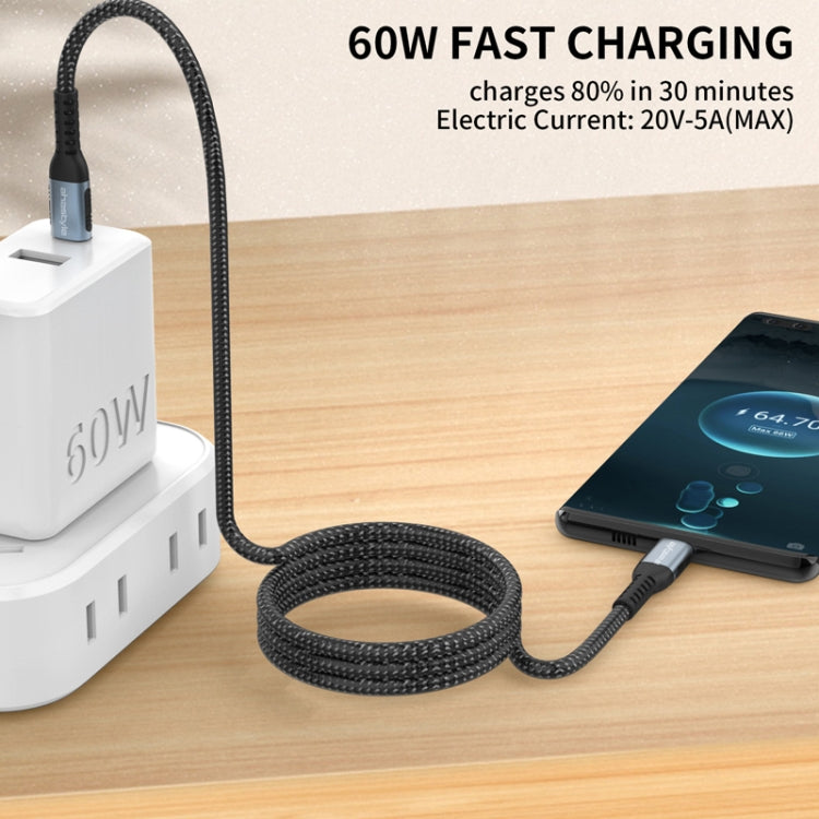 For Type-C Interface Devices AhaStyle Nylon Braided Dual Charging Cable, Power: 60W