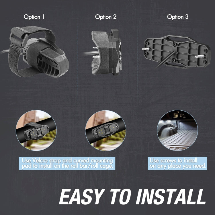 8. Applicable models: Suitable for truck, SUV, pickup, UTV, RZR, Polaris, Can-Am, Polaris, Kawasaki, 4x4, ATV, car or any other vehicle. It can be installed in your cab, truck chassis, engine bay, wheel well or anywhere else you need bright and smooth lighting