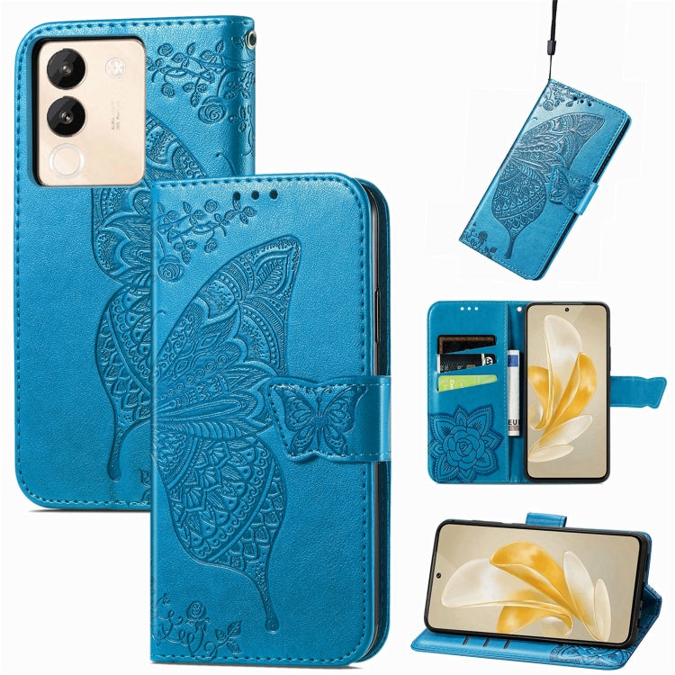 For vivo X100 Pro Butterfly Love Flower Embossed Leather Phone Case(Blue)