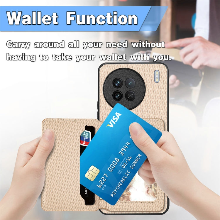 For vivo X90 Pro Carbon Fiber Magnetic Card Bag Phone Case(Brown)