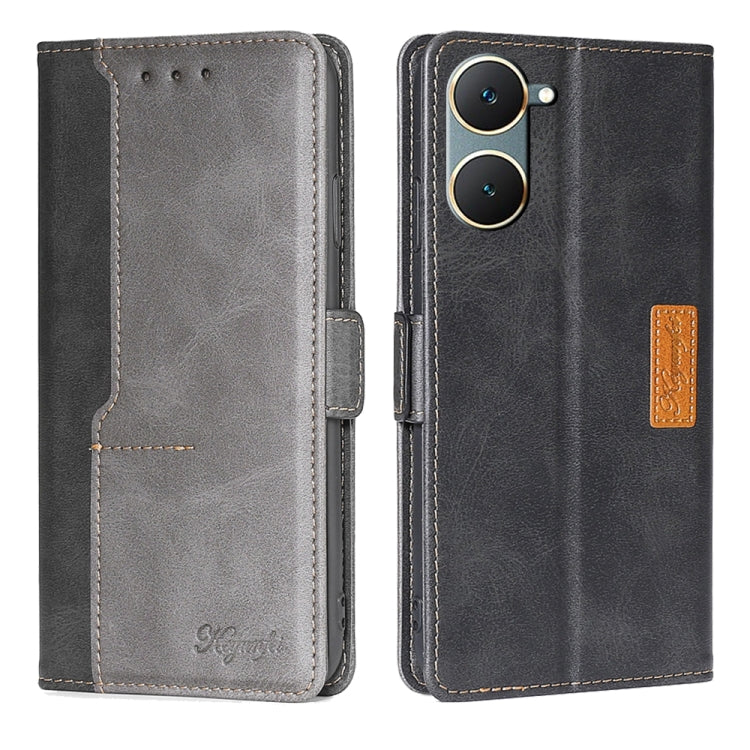 For vivo Y03 4G Contrast Color Side Buckle Leather Phone Case(Black + Grey)