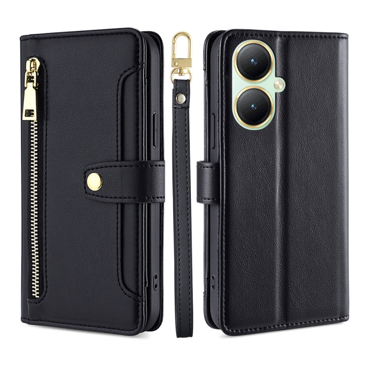 For vivo Y35+ 5G Lite Sheep Texture Cross-body Zipper Wallet Leather Phone Case(Black)